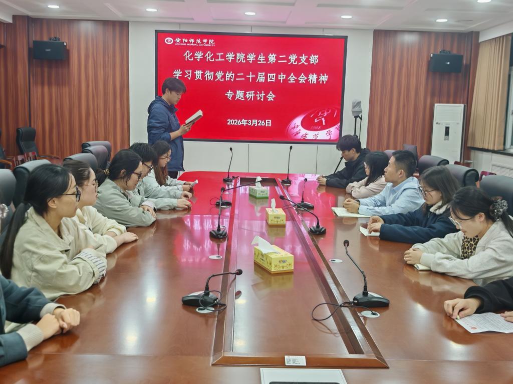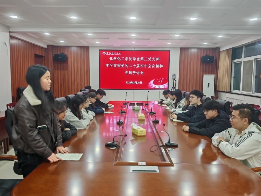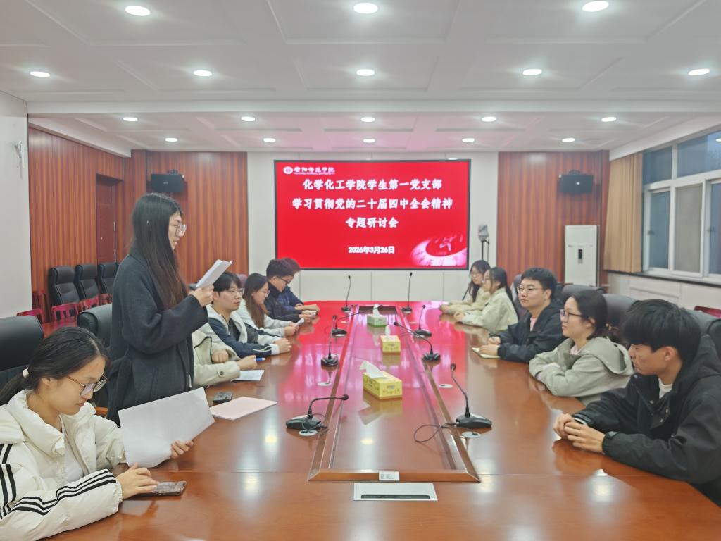 为深入学习贯彻党的“十五五”规划精神,引导青年党员准确把握时代脉搏、强化使命担当。3月26日晚,我院在化工楼218会议室组织开展了学生党支部学习贯彻党的二十届四中全会精神专题研讨会,参与人员为全体学生党员。