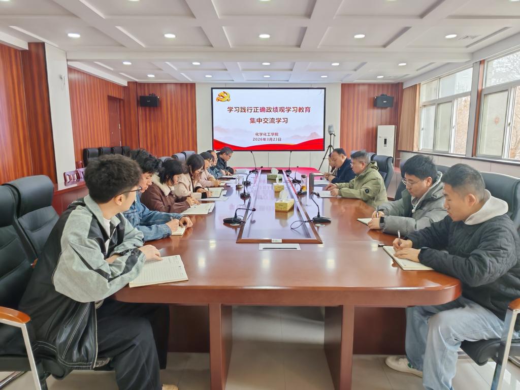 4月23日,化学化工学院在218会议室开展学习践行正确政绩观学习教育读书班集中交流学习。全体领导班子、各支部书记参加学习,以深学促笃行、以交流谋实效,紧扣"政绩为谁而树、树什么样的政绩、靠什么树政绩"核心问题,凝聚推动学院高质量发展的思想共识 。学院党委书记关盼军、院长杜卫民、党委副书记刘红玉先后交流发言,分享学习感悟与实践思路。