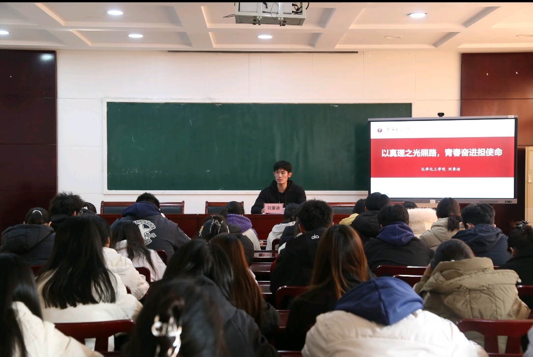 为筑牢团学骨干思想根基,凝聚青春奋进力量,2025年12月11日下午14:00我院辅导员刘豪迪老师在化工楼217会议室开展“以真理之光照路 青春奋进担使命”为主题的专题培训,全体团学骨干参会学习。