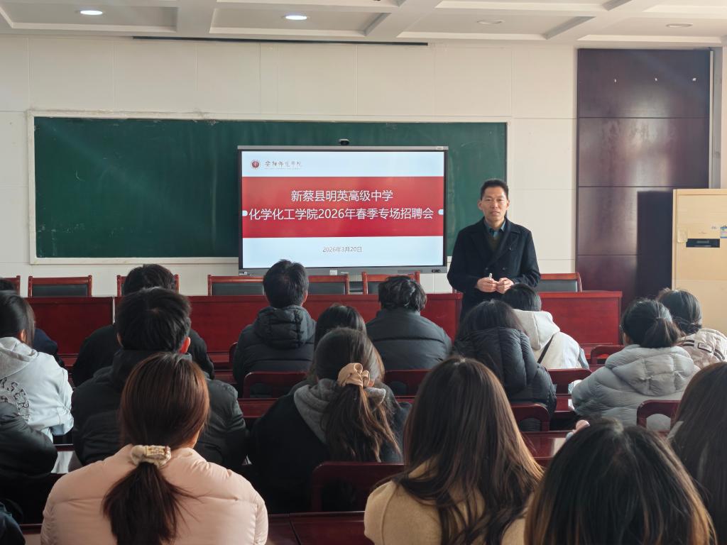 为搭建优质就业对接平台,精准助力我院学子就业择业,3月20日上午在化工楼217会议室,新蔡县明英中学走进我院,开展教师招聘专场宣讲会,学院化学相关专业本、硕毕业生踊跃参与。本次招聘聚焦化学学科教师岗位,为我院学子提供了优质的教育行业就业机会。