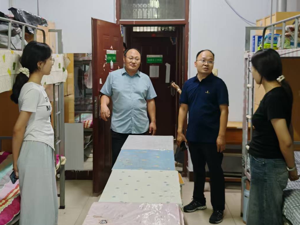 走访过程中,杜记民副校长用亲切的话语与新生们交谈,耐心询问住宿设施使用、饮食适应等生活细节,并叮嘱新生,要主动调整心态,在与同学相处中相互理解、共同进步,以积极饱满的状态投入大学学习生活。我院党委书记关盼军着重提醒新生提高安全防范意识,自觉遵守学校规章制度;院长杜卫民则详细了解新生对学院的初印象,向大家介绍学校的办学特色、学科优势及未来发展规划,帮助新生建立对学院的认同感;党委副书记刘红玉鼓励大家积极参与校园活动,尽快开启充实的大学生活。