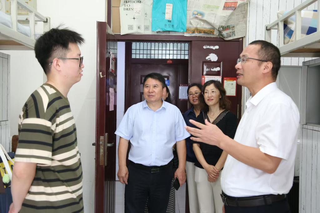 为及时了解新生入学适应情况,传递学校关怀,9月14日下午,我校副校长杜记民在我院领导班子及全体辅导员的陪同下,走进2025级新生宿舍,与同学们面对面交流,为大家送去温暖的问候与诚挚的鼓励。
