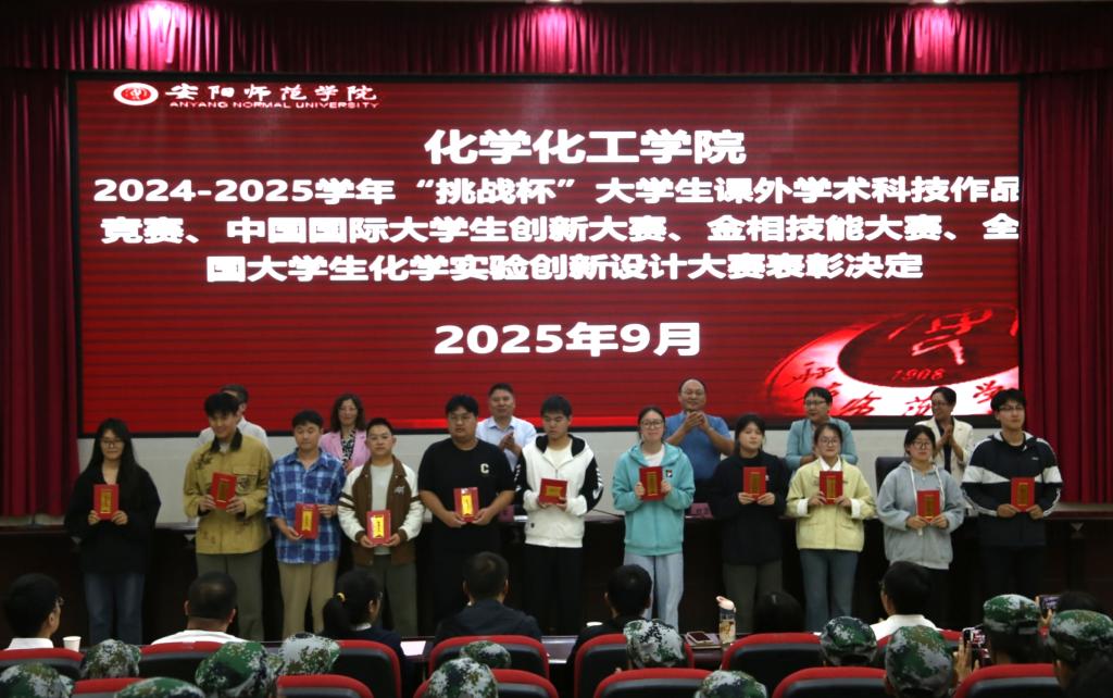 学院副院长王军杰和赵国燕分别宣读《化学化工学院关于表彰2024—2025学年学风建设先进班集体、学习标兵和先进个人的决定》《化学化工学院关于表彰2024—2025学年大学生学科竞赛获奖个人的决定》。与会领导老师为受表彰的集体和同学颁奖。