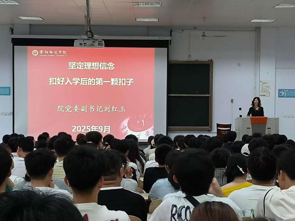 为帮助新生坚定理想信念,明确大学学习生活方向,引导新生树立正确的成长观念,9月14日,我院党委副书记刘红玉于和展阶梯201为新生开展“坚定理想信念,扣好入学后的第一颗扣子”专题讲座,我院2025级全体新生参加。