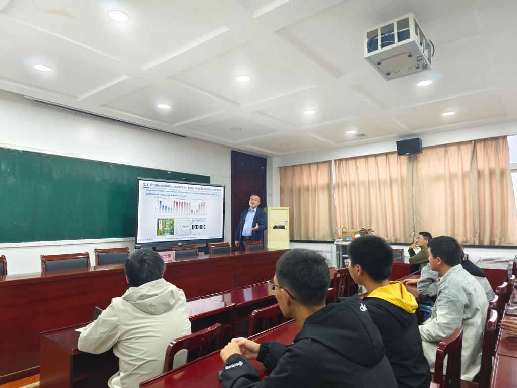 10月21日,河南师范大学武大鹏教授应邀来我院进行学术交流,在化学楼218会议室做了题为“激光诱导材料微结构调控极其催化界面机制研究”报告。报告会由我院副院长王军杰教授主持,我院部分教授和青年教师聆听了报告。