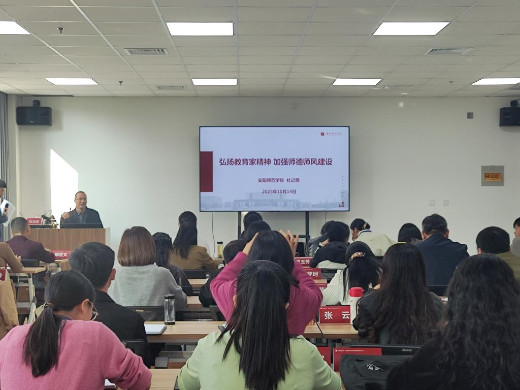 为深入学习贯彻习近平总书记关于教育家精神的重要论述,落实“为党育人、为国育才”的初心使命,近日,副校长杜记民以“弘扬教育家精神,加强师德师风建设”为主题,为化学化工学院师生讲授了一堂立意高远、内涵丰富的专题思政课。学院领导班子、全体辅导员及100余名师生代表现场聆听学习,共同感悟教育家精神的时代力量。