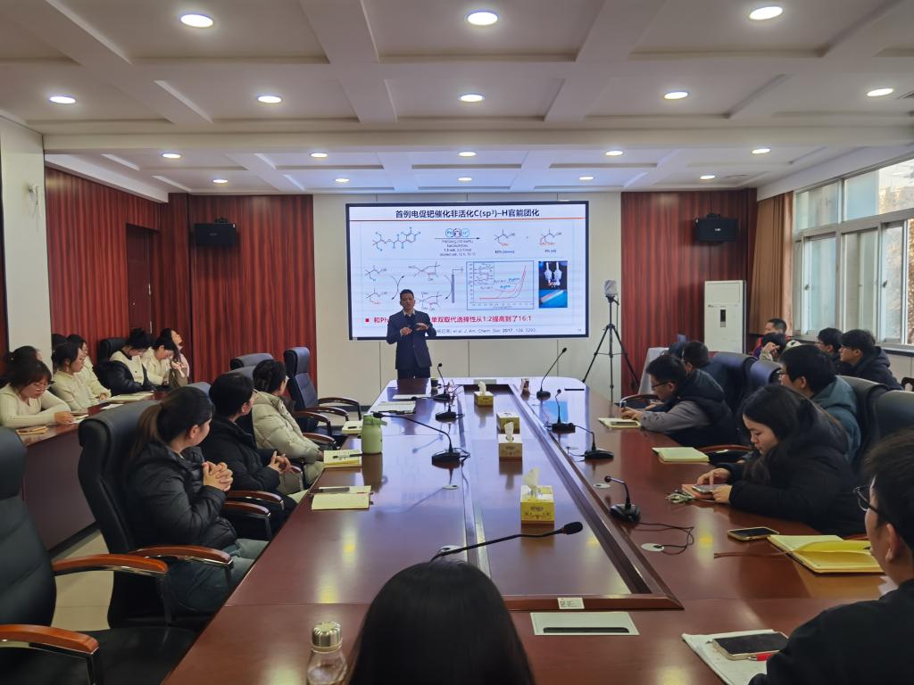 1月9日下午,中国科学院上海有机化学研究所梅天胜研究员应邀来我院进行学术交流,在化学楼218会议室做了题为“金属有机电化学合成”报告。报告会由我院院长杜卫民教授主持,我院部分教授和研究生聆听了报告。