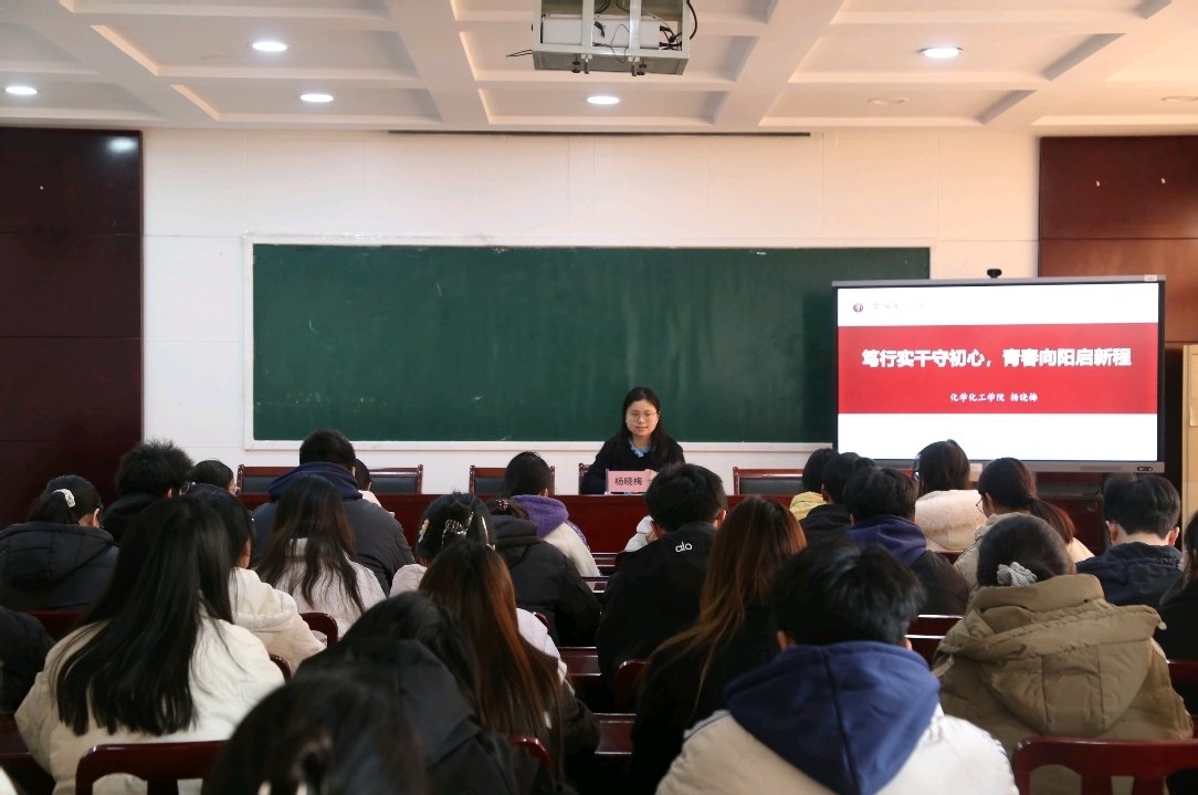 青春逢盛世,实干正当时。为强化团学骨干责任担当,引导青年学子以初心践使命、用实干写青春,2025年12月5日下午三点,我院学工办副主任杨晓梅老师开展“笃行实干守初心,青春向阳启新程”专题培训,2025级班团及化学化工学院入团积极分子参与。