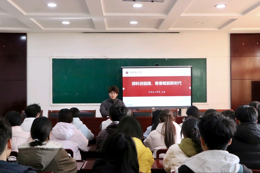 为引导团学骨干深耕科创领域、激发创新潜能,将青春智慧融入新时代科技创新浪潮,2025年12月22日中午12:00,我院学生会主席石磊在化工楼217会议室,以“探科创前路,青春赋能新时代”为主题开展专题培训。