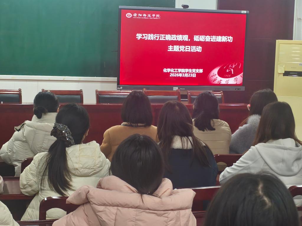 为深入学习贯彻习近平新时代中国特色社会主义思想,引导党员树立和践行正确政绩观,2026年3月23日,我院学生党支部在化工楼217开展“学习践行正确政绩观,砥砺奋进建新功”主题党日活动,参与人员为全体学生党员。