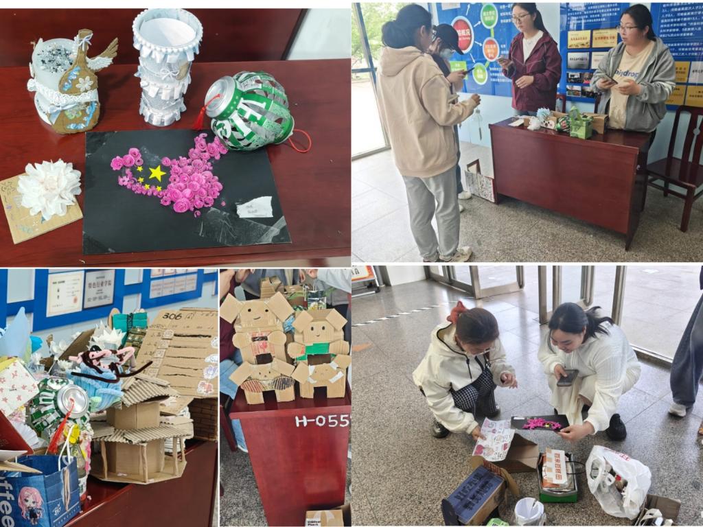 活动要求参与者利用废旧物品进行手工创作,作品需为原创。同学们积极发挥想象力,将废弃纸盒、塑料瓶、旧衣物等改造为实用或美观的创意作品。4月8日至12日为作品提交阶段,参与者将作品交至现场志愿者处并完成线下签到。活动过程中,社团工作人员严格把控安全与秩序,确保活动顺利开展。